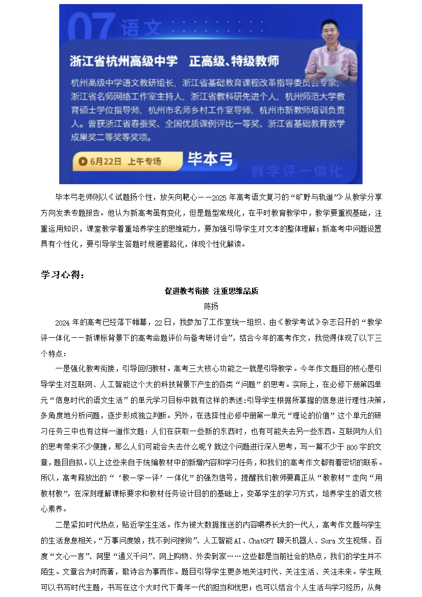 彭乐群名师工作室全员线上参与"教学评一体化——新课标背景下的高考命题评价与备考"研讨会