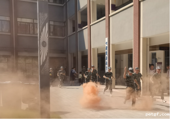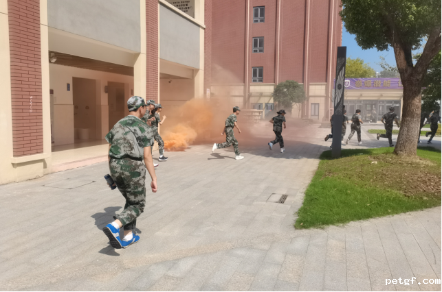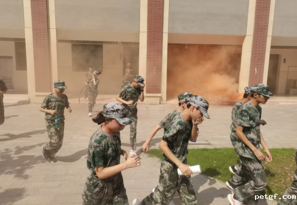 8月23日下午,随着警报声响起,教学楼多处浓雾弥漫,通讯组、保卫组、抢险组等多组人员展开疏散和自救工作,同学们在教师和工作人员的组织下,从安全通道快速有序撤离。