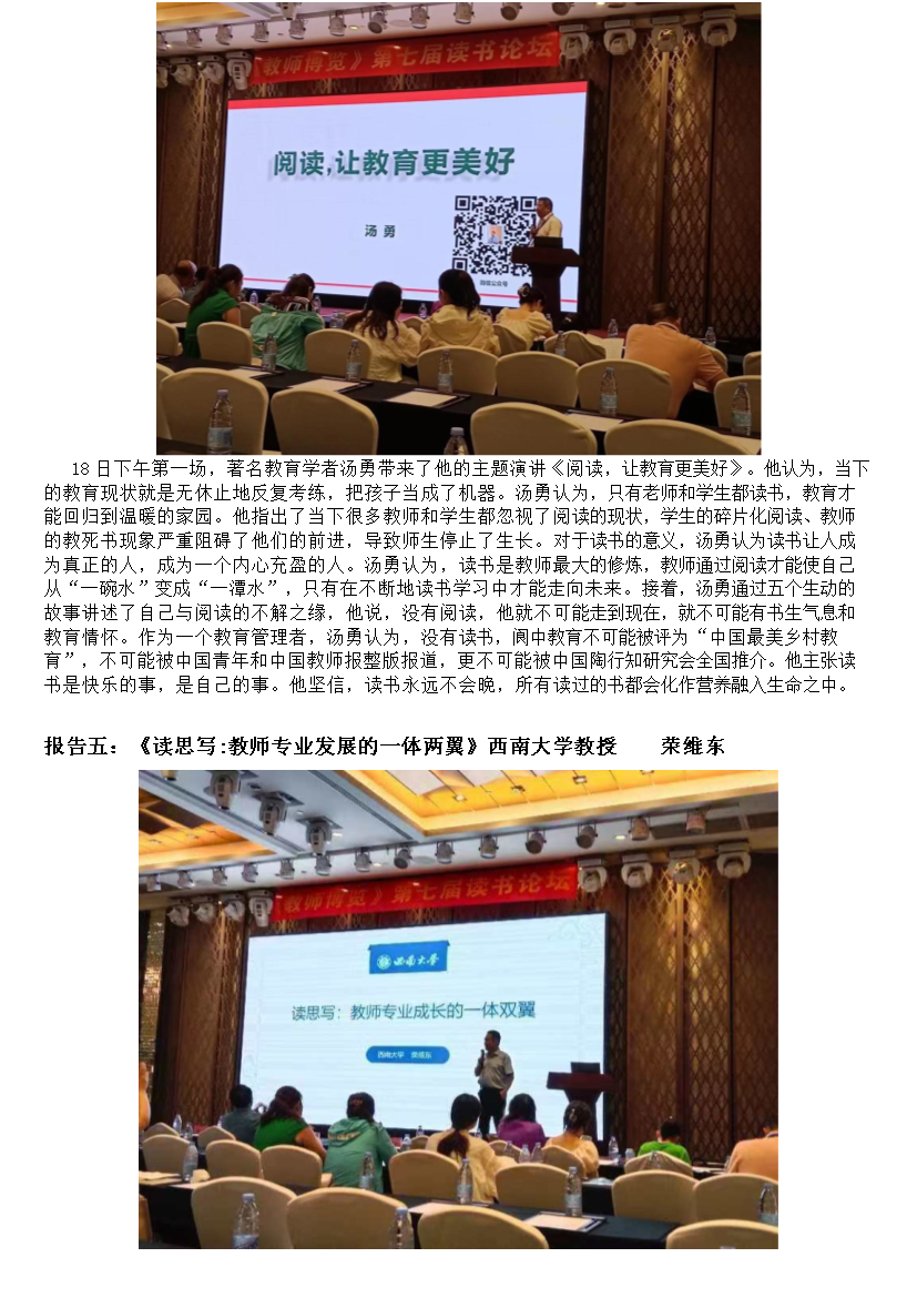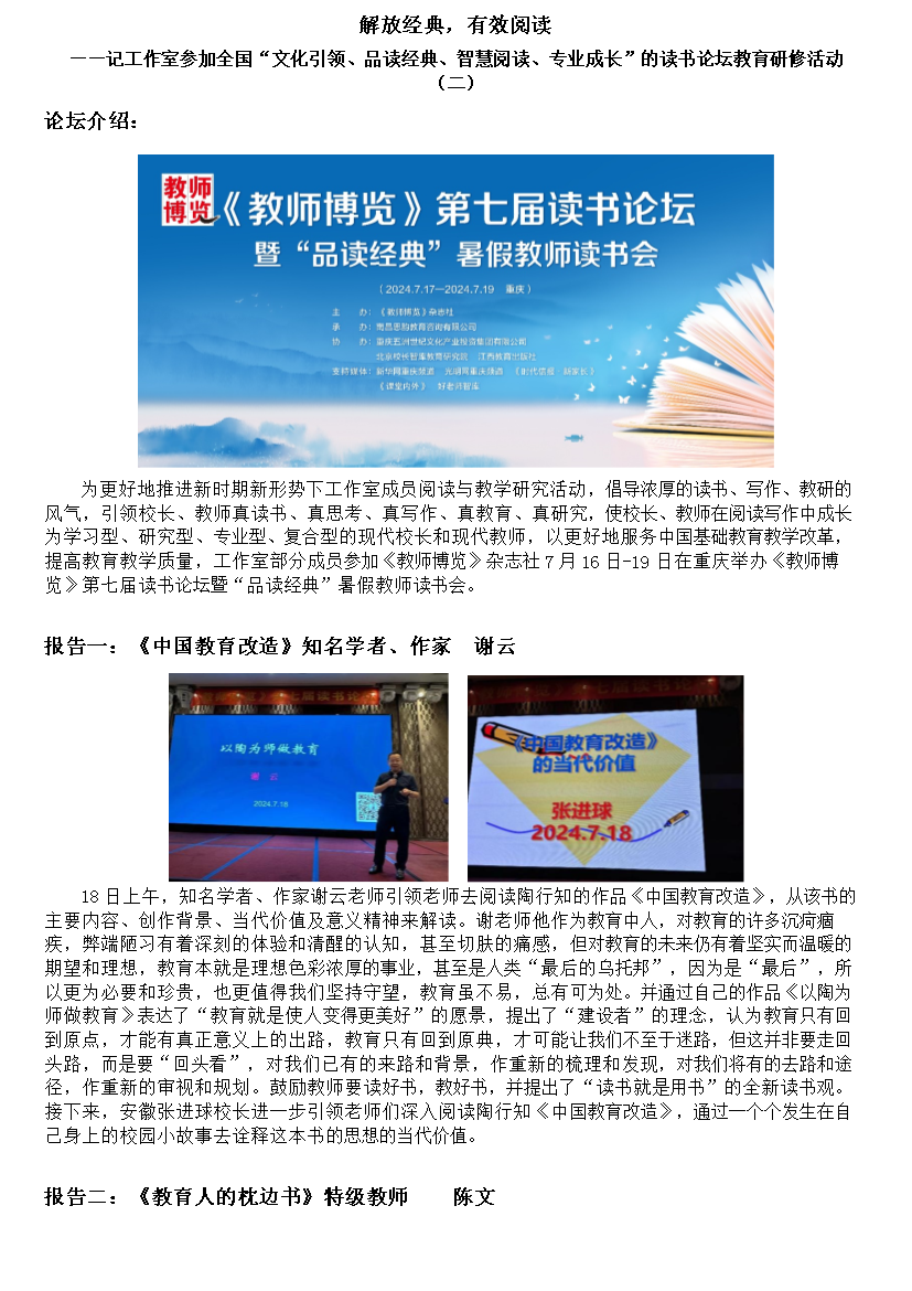 记工作室参加全国“文化引领、品读经典、智慧阅读、专业成长”的读书论坛教育研修活动(二)