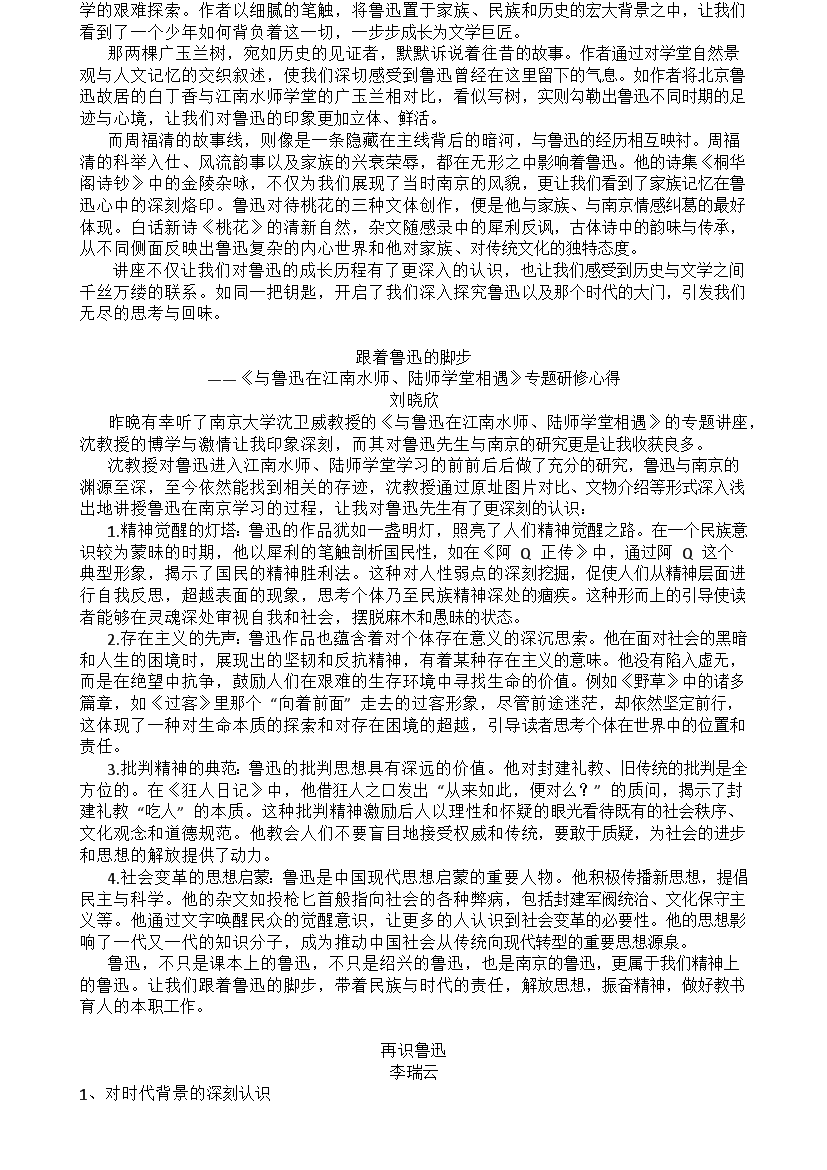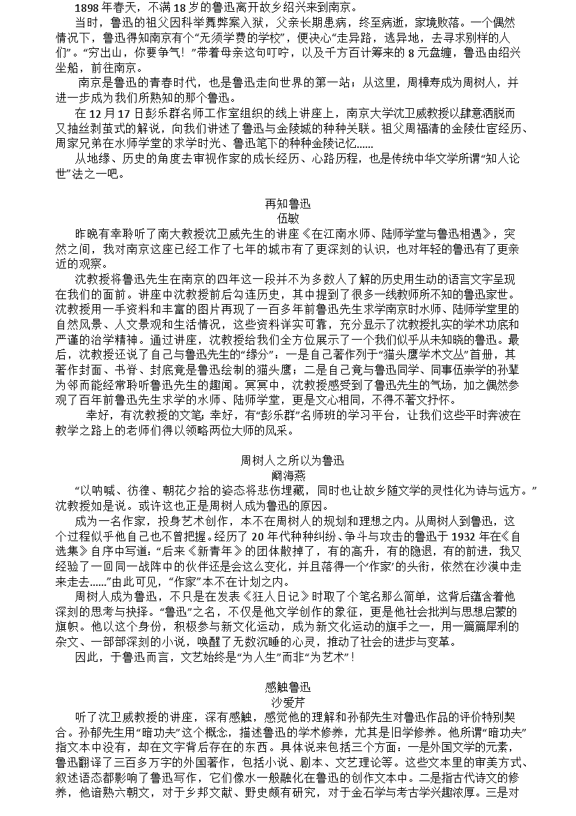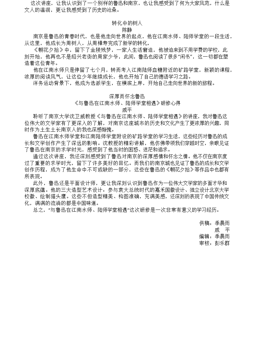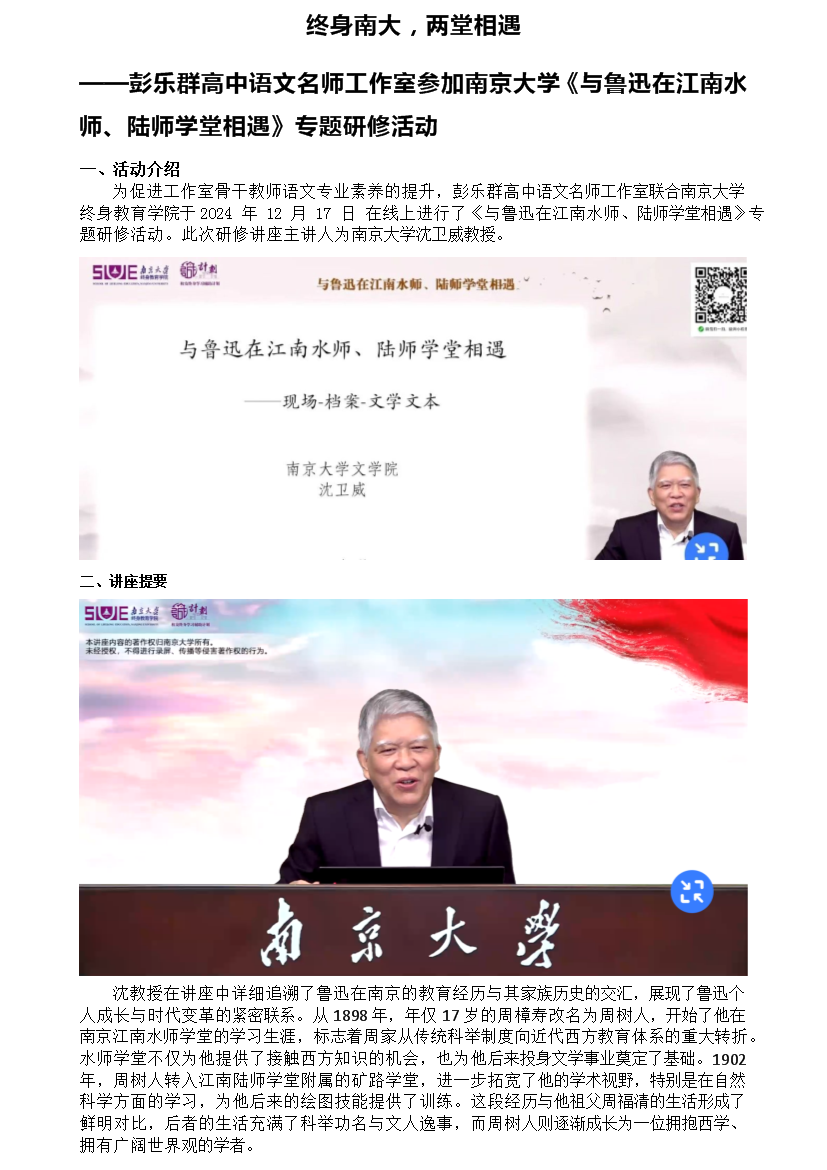 彭乐群高中语文名师工作室参加南京大学《与鲁迅在江南水师、陆师学堂相遇》专题研修活动