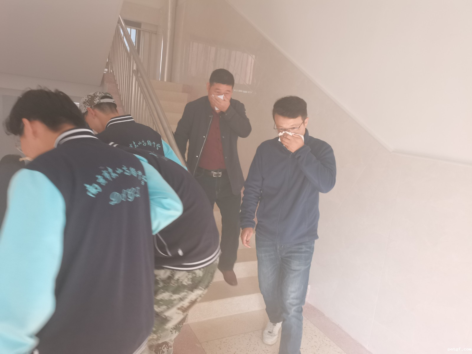 演练按预案顺利进行演练按预案顺利进行。下午2:29演练烟雾弹发烟,正在上课的高一师生听到有紧急情况发生的警报声后,立即用湿毛巾捂住口鼻,井然有序下楼,快速到达安全地点操场集合。各班班主任迅速清点人数完毕后,纪立建副校长就此次演练做了“安全重于一切”的总结讲话。