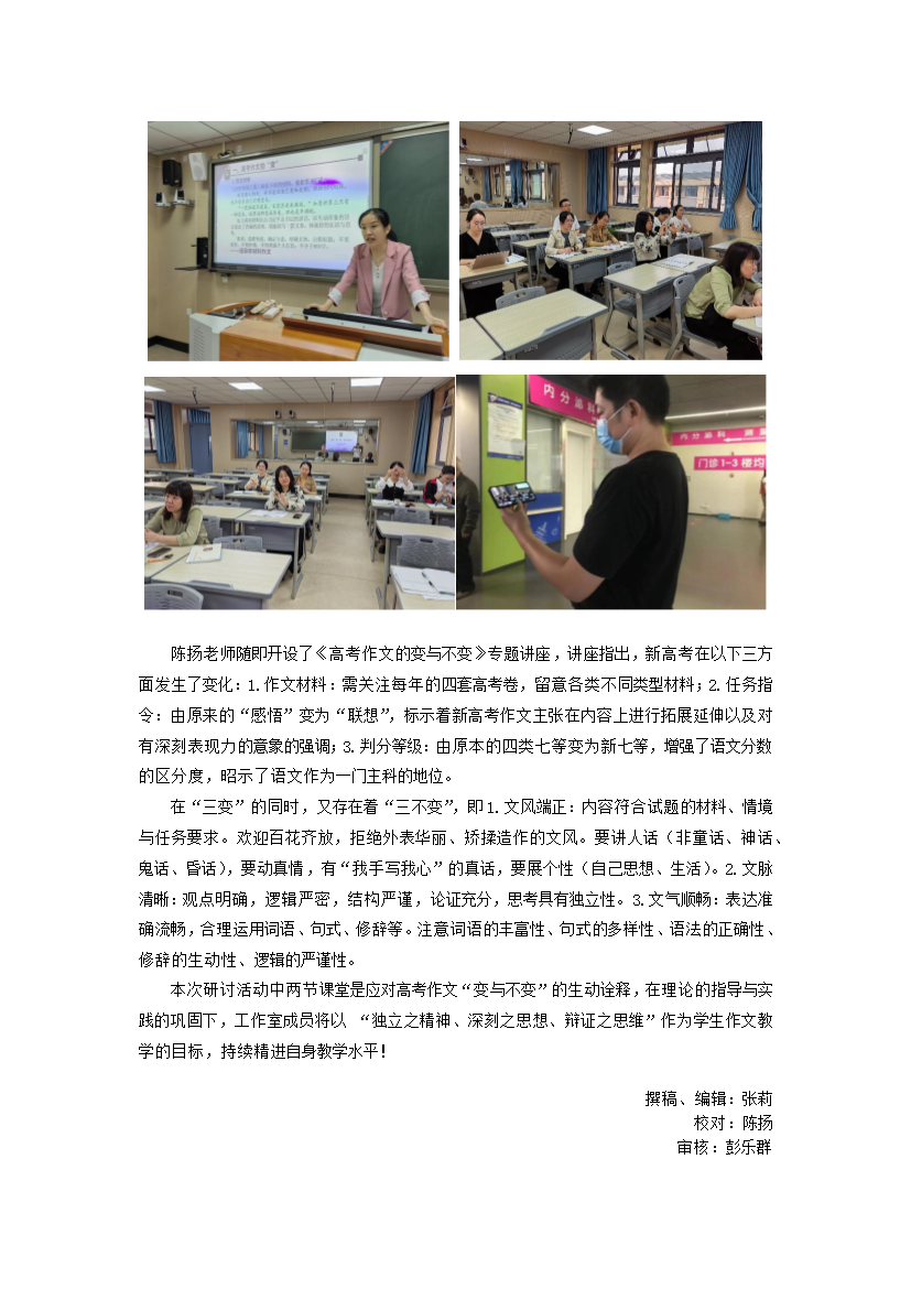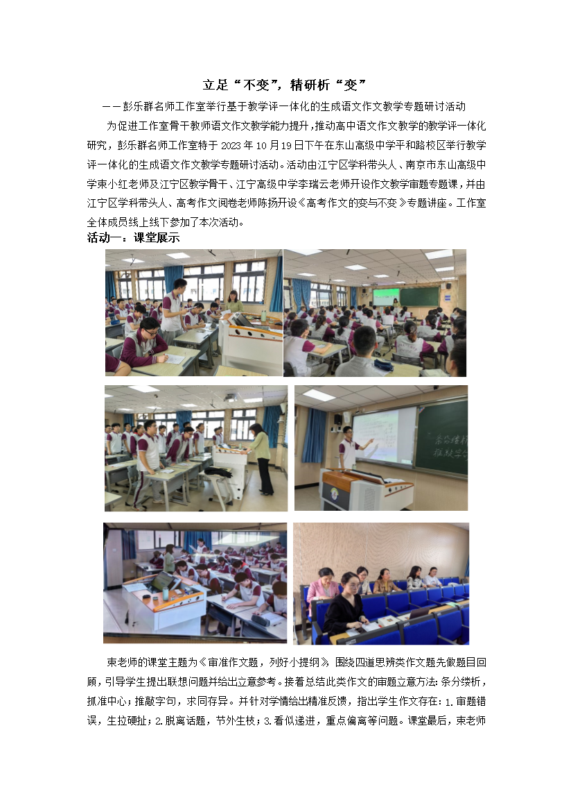 彭乐群名师工作室举行基于教学评一体化的生成语文作文教学专题研讨活动